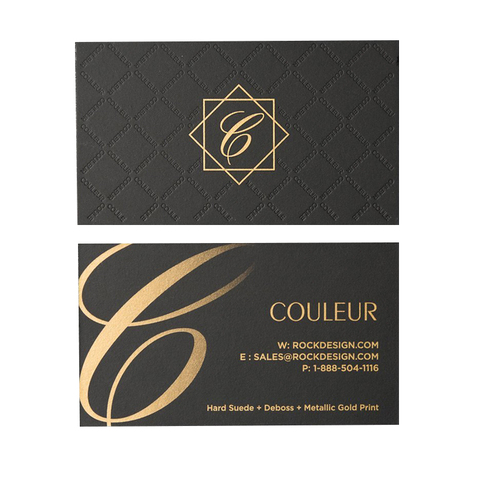 Luxe visitekaartjes bedrukken met zwart reliëf en goudfolie op karton