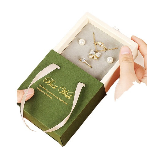 صندوق انزلاقي فاخر مخصص صندوق تغليف مجوهرات صندوق هدايا بدرج من الورق الصلب مع شعار